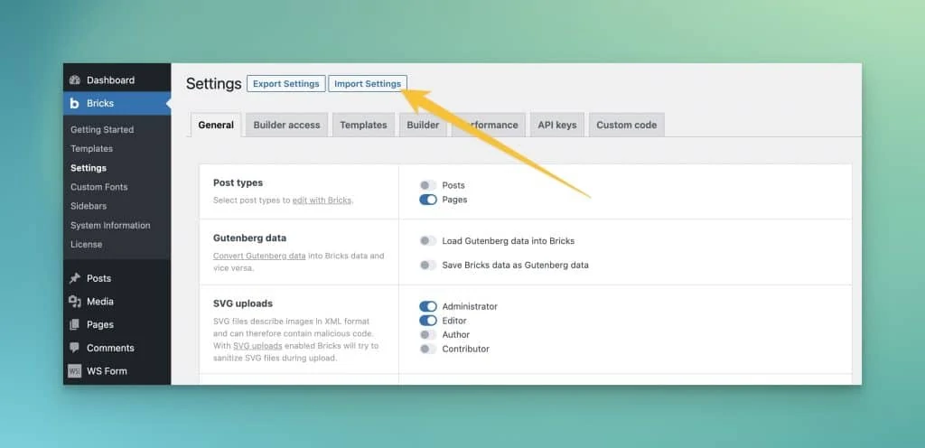 We provide two settings files to establish the default settings for your Bricks project automatically. One is a Bricks Settings file and the other is a Bricks Theme file.