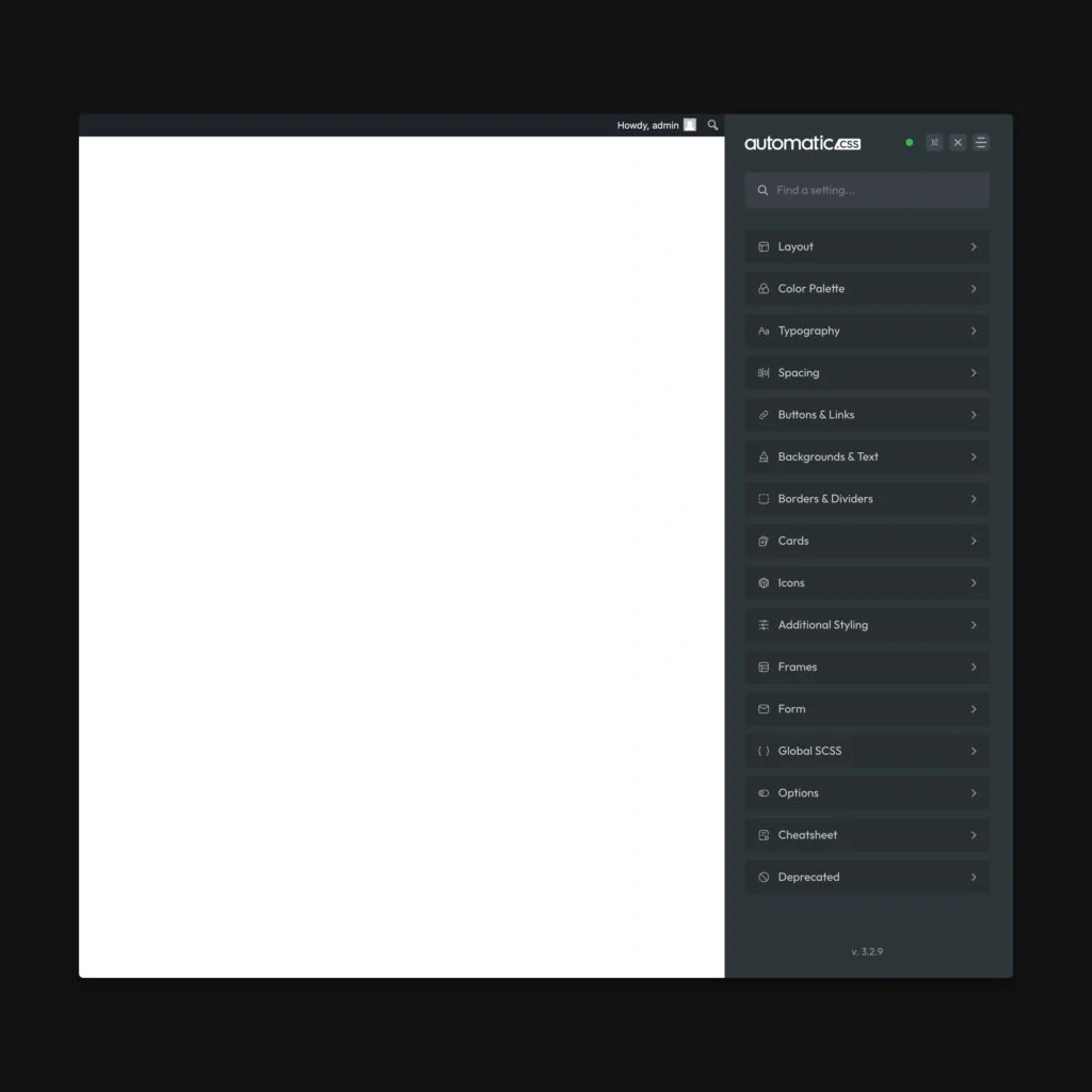 Automatic.css is managed from a Real-Time Dashboard – available in the builder or on the front-end – that features Instant Preview and Hot Reload and various other enhancements.